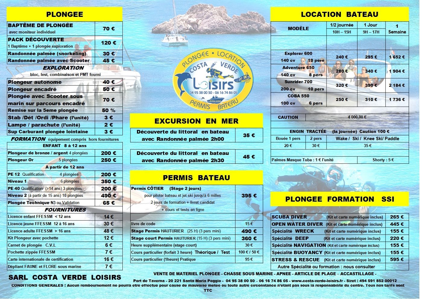 - excursions en mer, tarif sur demande selon les souhaits des clients